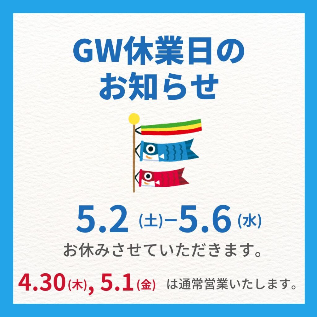 【ゴールデンウィーク休業のお知らせ】